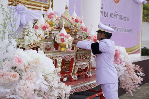 สำนักงานพัฒนาชุมชนจังหวัดเพชรบุรี นายธรรมนูญ ไขว้พันธุ์ พัฒนาการจังหวัดเพชรบุรี พร้อมด้วยเจ้าหน้าที่กลุ่มงานยุทธศาสตร์การพัฒนาชุมชน ร่วมประกอบพิธีเจริญพระพุทธมนต์และทำบุญตักบาตร เพื่อถวายเป็นพระราชกุศลแด่ทั้งสองพระองค์ และพิธีวางพานพุ่มดอกไม้ถวายสักการะ สมเด็จพระเจ้าบรมวงศ์เธอ เจ้าฟ้าเพชรรัตนราชสุดา สิริโสภาพัณณวดี กรมพระนครปฐมบรมขัตติยานี มหาธีรราชธิดา ณ บริเวณลานรัฐพิธี หน้าศาลากลางจังหวัดเพชรบุรี
